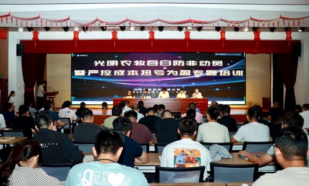 为进一步凝聚非瘟防控共识、压实防控责任,9 月 26日,光明农牧以 “百日防非动员暨严控成本扭亏为盈专题培训” 为契机,召开“百日防非”专题动员部署会。光明农牧班子成员、生产运营中心、保障服务中心、成本核算中心及相关部室负责人,各牧场场长、...