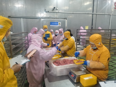 临近新春佳节,牛排火爆销售带来较大的生产压力。联豪的党员积极响应、主动出击,深入生产车间协助分检打包产品,缓解一线员工紧缺,引导全体员工卯足干劲抢抓旺季生产。1月14—18日期间累计打包套袋产品达3128KG。 工作中,党员们个个精神抖擞...