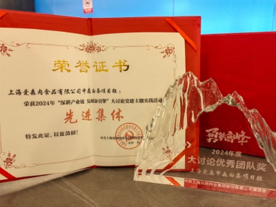 上海爱森申森白条项目组荣获2024年3044永利集团“深耕产业链 发展新引擎”大讨论党建主题实践活动先进集体。