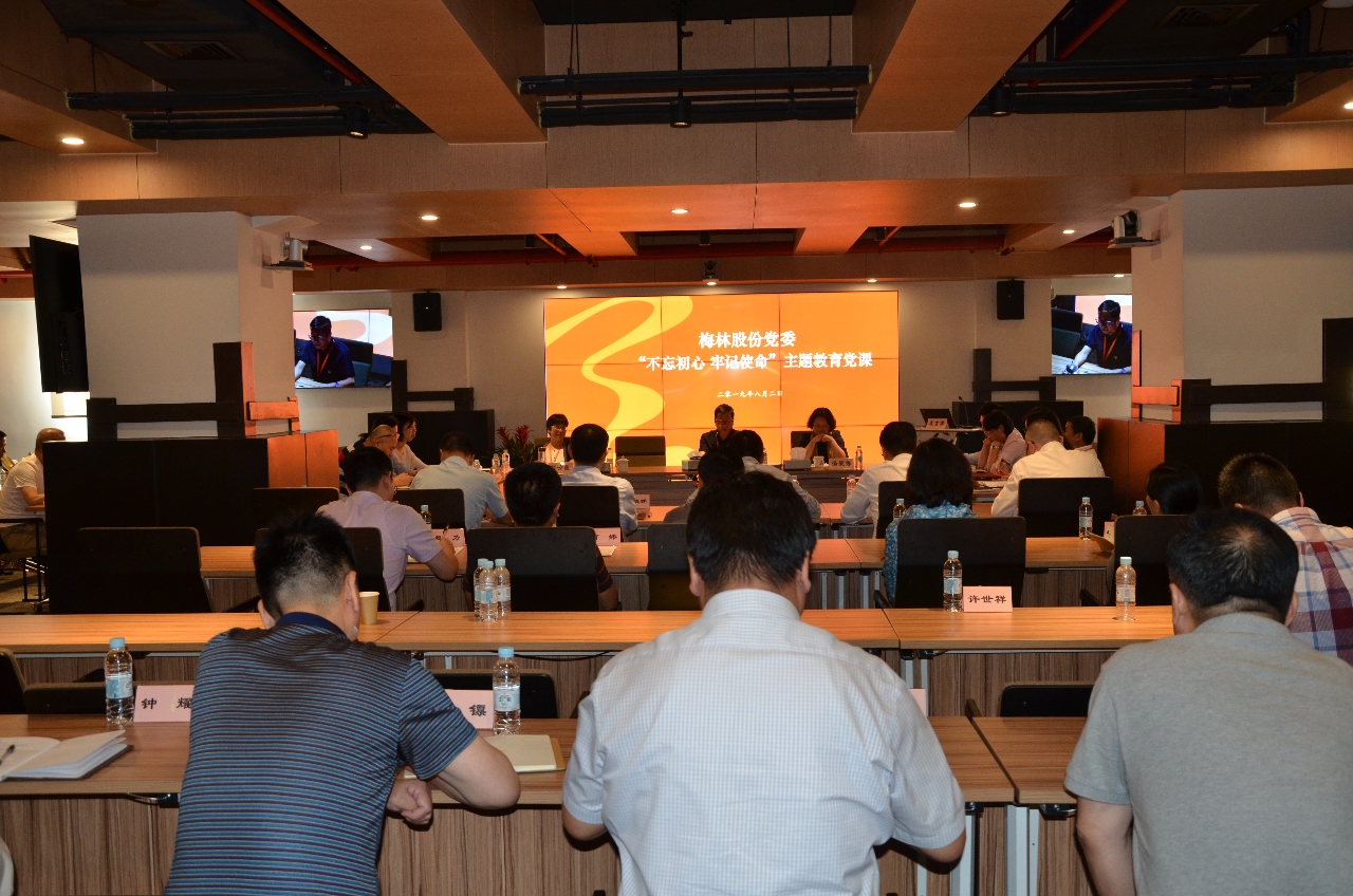 照梅林股份“不忘初心、牢记使命”主题教育实施方案安排,2019年8月2日,股份公司党委书记、总裁王国祥同志作了题为《不忘初心、牢记使命、凝聚共识、砥砺前行,以更加昂扬的姿态开创梅林事业新篇章》的主题党课。