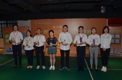 光明国际党委委员、梅林股份党委副书记、纪委书记徐美华;梅林股份党委委员、副总裁、董秘何茹;梅林股份党委委员、总部党支部书记方霞三位领导出席比赛并为获奖选手颁奖。(四个项目季军、四个项目亚军、四个项目冠军)